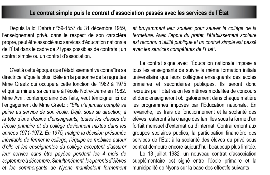 Furthermore, Bulletin n°44 of the Société d’Etude Nyonsaises, « Terre d’Eygines », dated 2009, refers to Mme Graetz, Jacqueline, and informs us that she was the « most faithful » lay headmistress of the Ecole Notre-Dame de Nyons between 1962 and 1975, confirming a return to France no later than 1962.